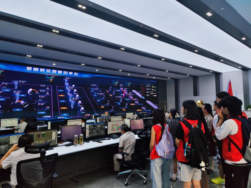 图为施主任向志愿者展示智能炼钢工艺流程 通讯员 邹润东 供图